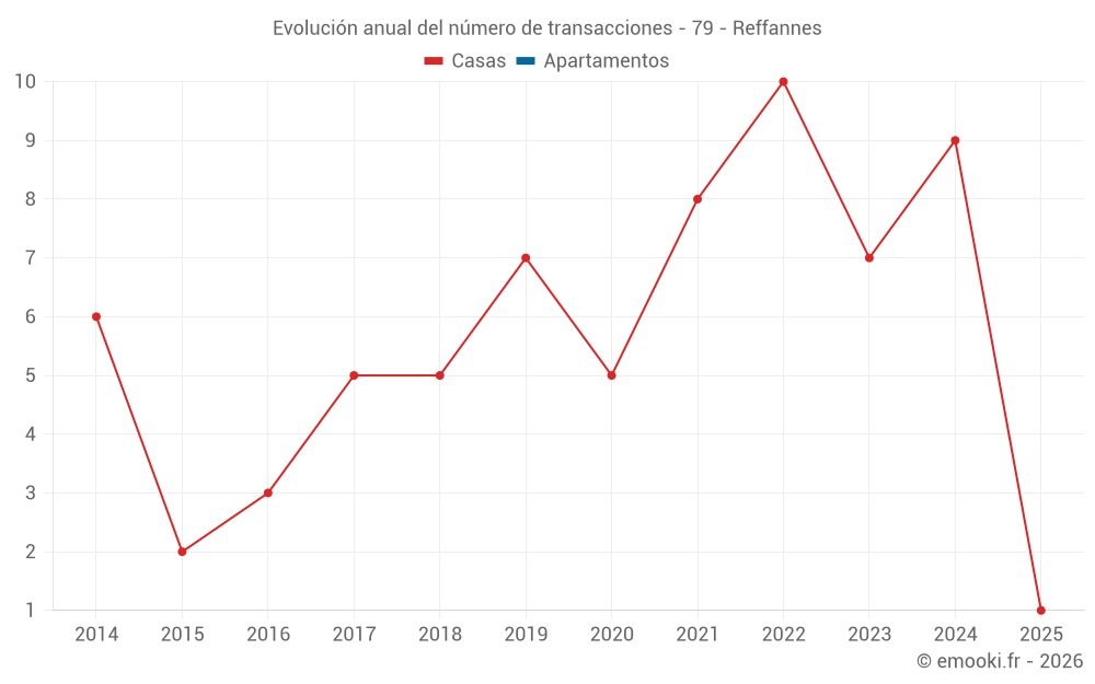 El precio mediano en las 15 transacciones de casas de los últimos 24 meses en la comuna de Reffannes fue de 677 € por metro cuadrado para un valor patrimonial medio de 69 000 €. Durante este período el 60% de las transacciones estuvieron entre 508 y 1 384 € por metro cuadrado (del 2º al 8º decil).