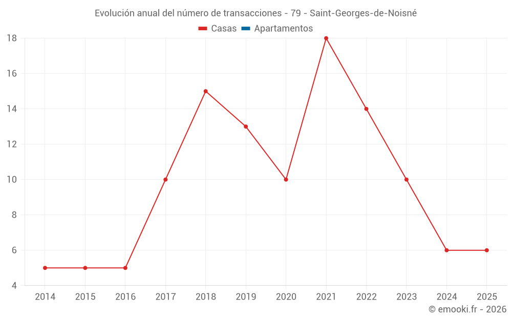 El precio mediano en las 17 transacciones de casas de los últimos 24 meses en la comuna de Saint-Georges-de-Noisné fue de 919 € por metro cuadrado para un valor patrimonial medio de 85 000 €. Durante este período el 60% de las transacciones estuvieron entre 511 y 1 267 € por metro cuadrado (del 2º al 8º decil).