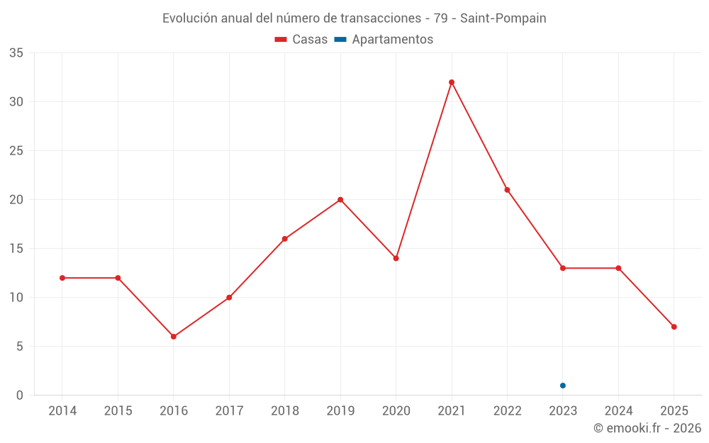 El precio mediano en las 26 transacciones de casas de los últimos 24 meses en la comuna de Saint-Pompain fue de 1 201 € por metro cuadrado para un valor patrimonial medio de 128 500 €. Durante este período el 60% de las transacciones estuvieron entre 639 y 1 862 € por metro cuadrado (del 2º al 8º decil).