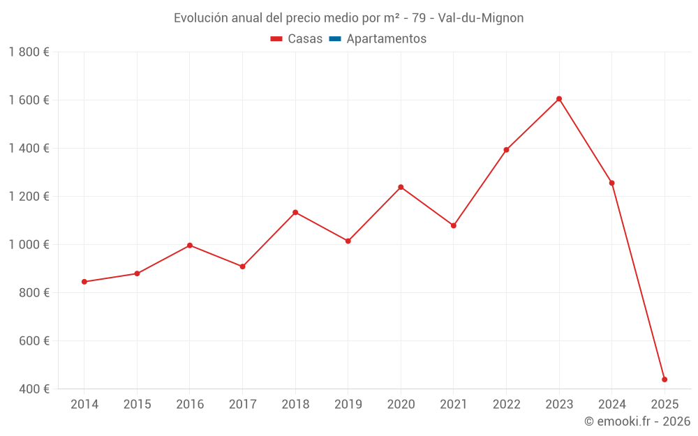 Evolución del precio medio por m² de las casas