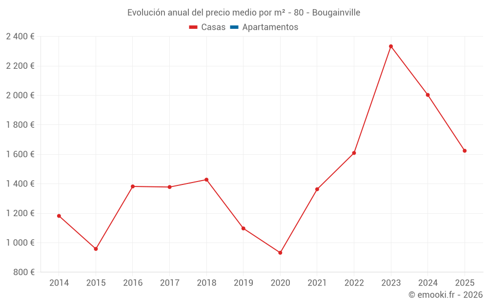 Evolución del precio medio por m² de las casas
