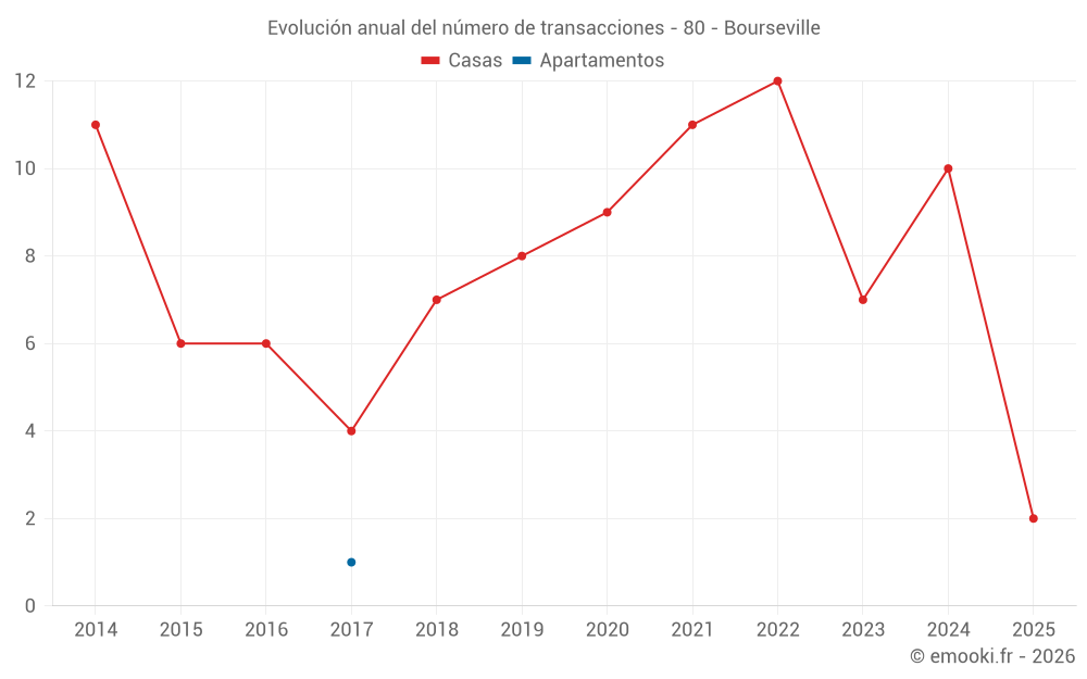 El precio mediano en las 16 transacciones de casas de los últimos 24 meses en la comuna de Bourseville fue de 1 524 € por metro cuadrado para un valor patrimonial medio de 157 900 €. Durante este período el 60% de las transacciones estuvieron entre 1 393 y 2 226 € por metro cuadrado (del 2º al 8º decil).