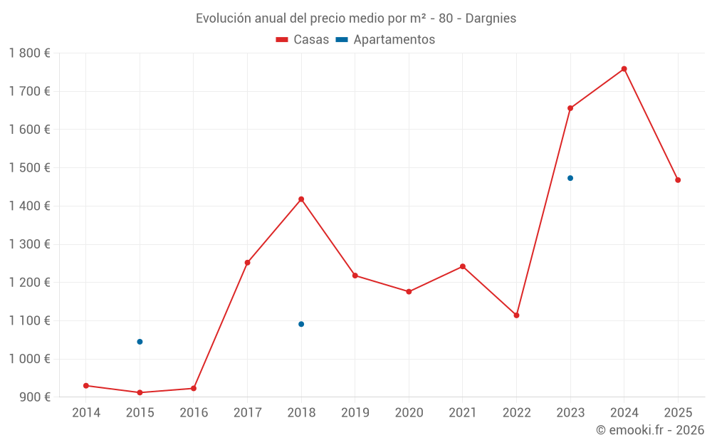 ¿Cuál es el precio por m2 de las casas en Dargnies?