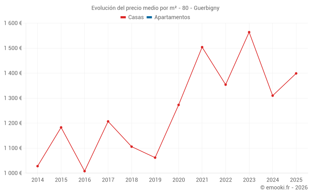 Mapa de precios de la vivienda en la comuna de Guerbigny, elija una sección para ver las transacciones por parcela.