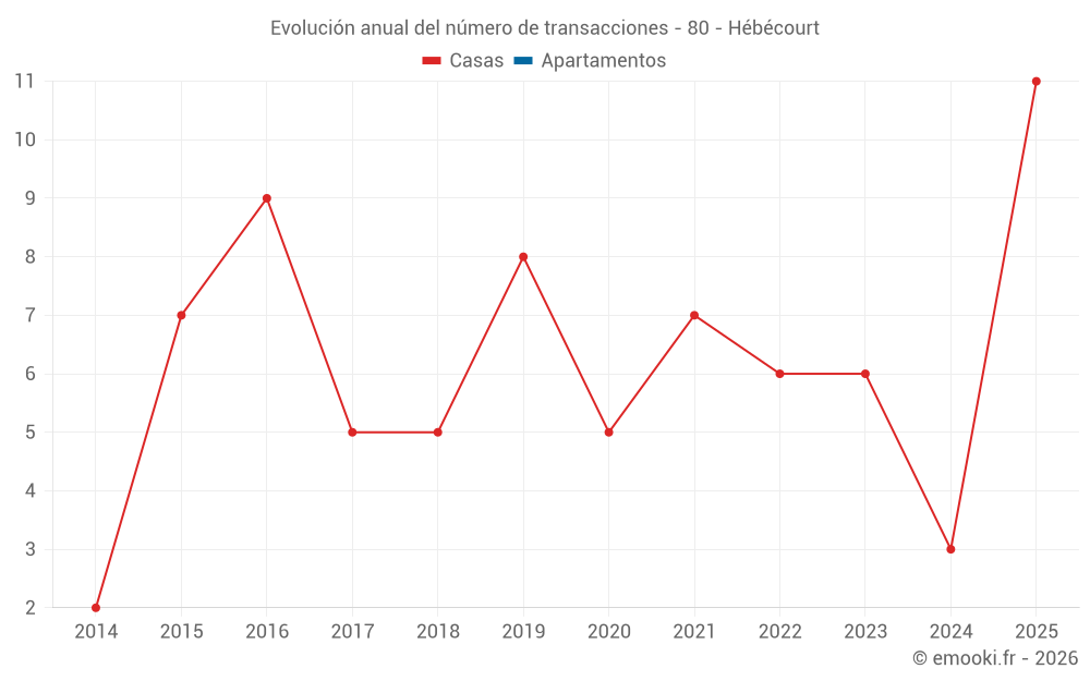 El precio mediano en las 14 transacciones de casas de los últimos 24 meses en la comuna de Hébécourt fue de 2 509 € por metro cuadrado para un valor patrimonial medio de 299 725 €. Durante este período el 60% de las transacciones estuvieron entre 1 892 y 2 895 € por metro cuadrado (del 2º al 8º decil).