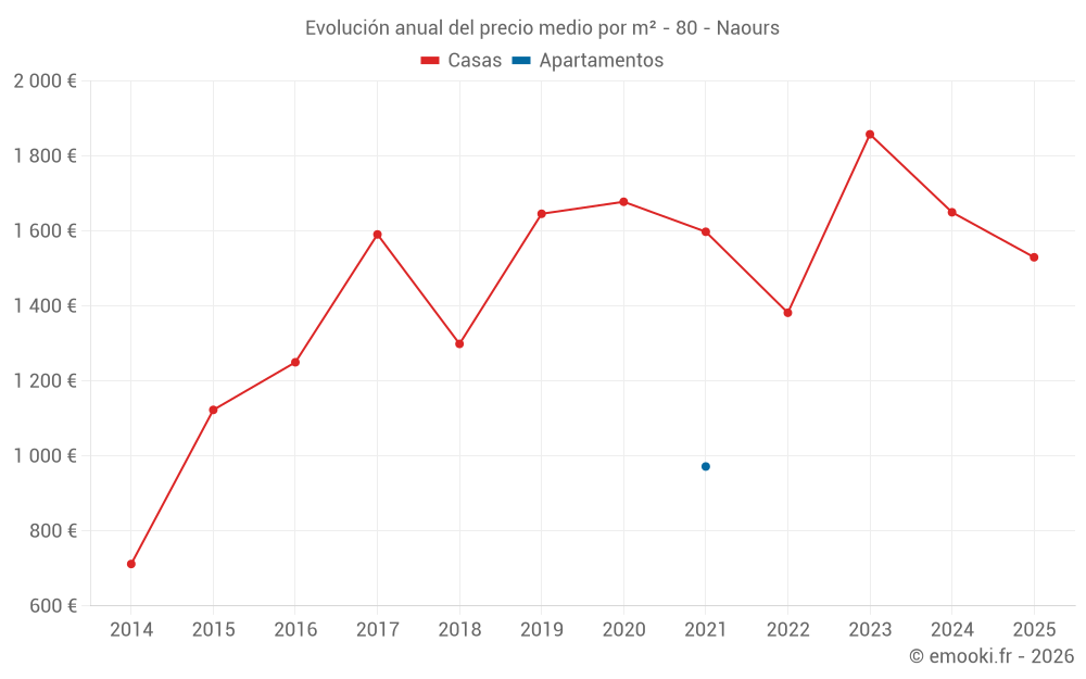 El precio mediano en las 19 transacciones de casas de los últimos 24 meses en la comuna de Naours fue de 1 667 € por metro cuadrado para un valor patrimonial medio de 157 000 €. Durante este período el 60% de las transacciones estuvieron entre 1 298 y 1 954 € por metro cuadrado (del 2º al 8º decil).