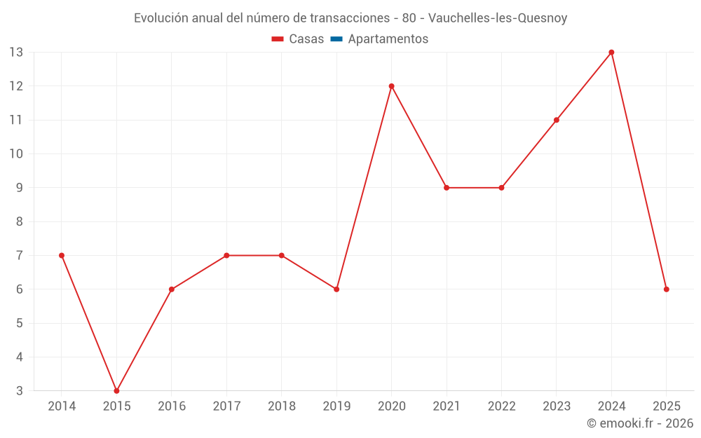 Mapa de precios de la vivienda en la comuna de Vauchelles-les-Quesnoy, elija una sección para ver las transacciones por parcela.