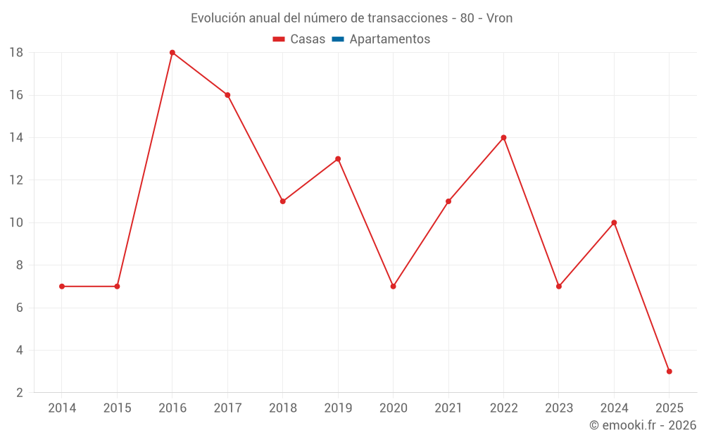 El precio mediano en las 17 transacciones de casas de los últimos 24 meses en la comuna de Vron fue de 1 644 € por metro cuadrado para un valor patrimonial medio de 135 000 €. Durante este período el 60% de las transacciones estuvieron entre 1 186 y 2 449 € por metro cuadrado (del 2º al 8º decil).