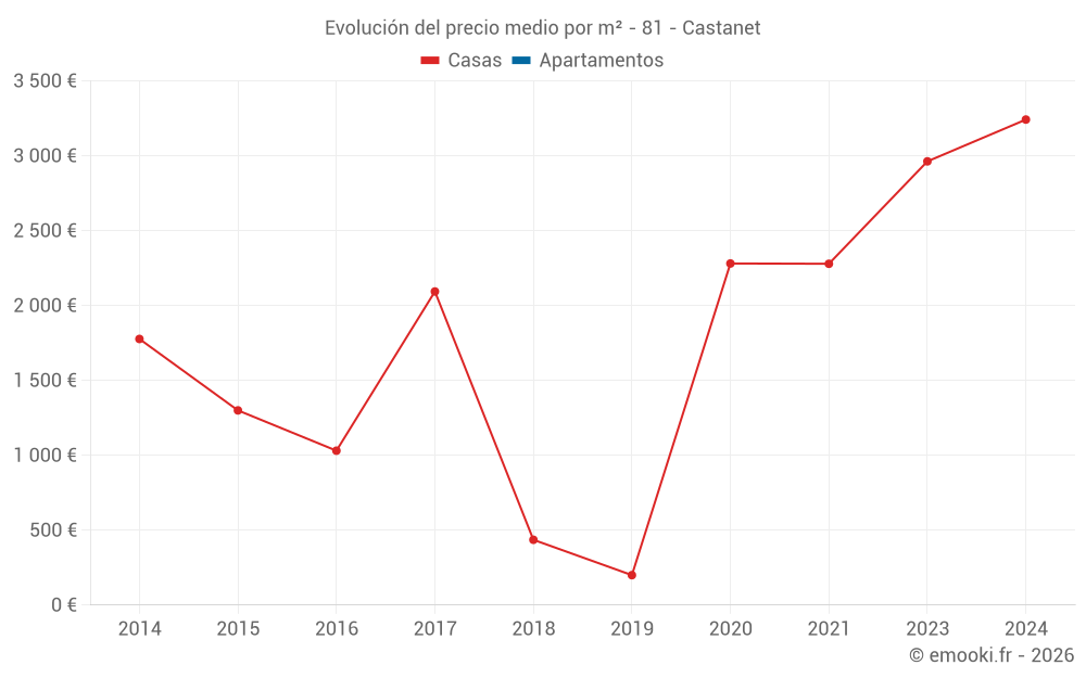 Mapa de precios de la vivienda en la comuna de Castanet, elija una sección para ver las transacciones por parcela.