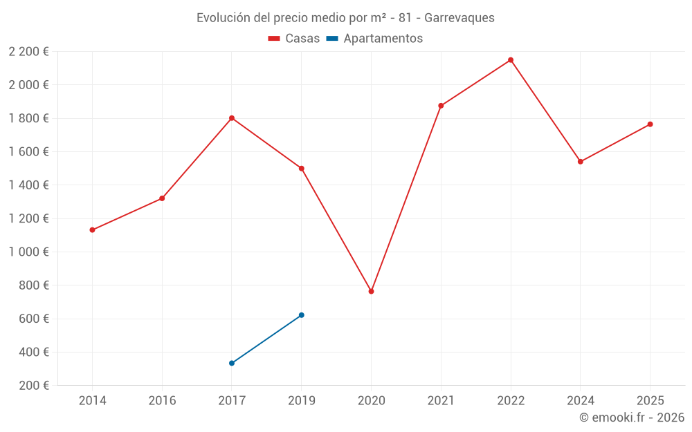 Mapa de precios de la vivienda en la comuna de Garrevaques, elija una sección para ver las transacciones por parcela.