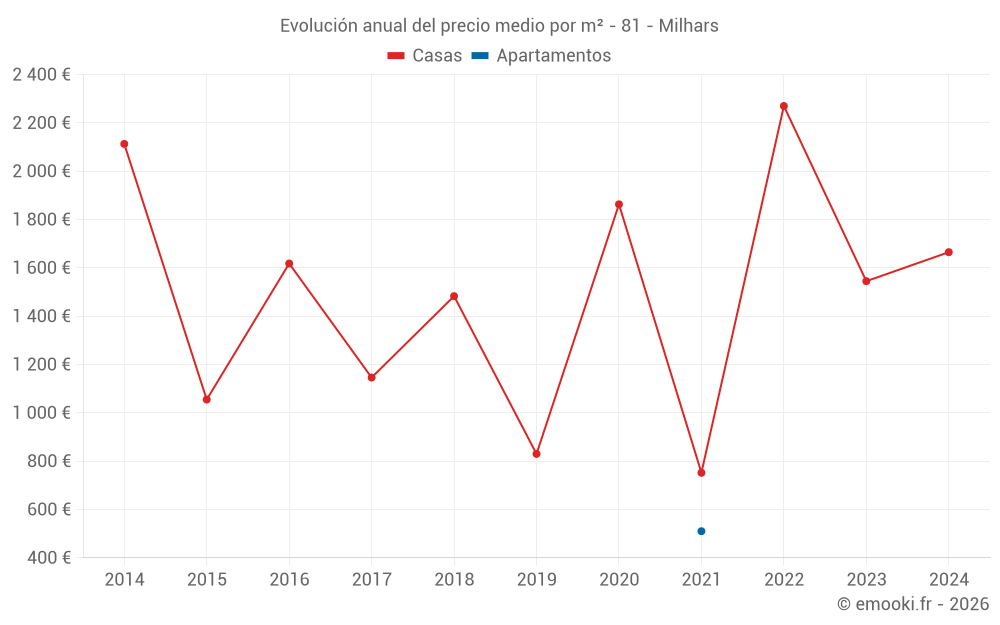 Evolución del precio medio por m² de las casas