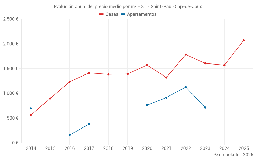 ¿Cuál es el precio por m2 de las casas en Saint-Paul-Cap-de-Joux?