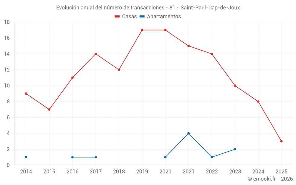 El precio mediano en las 14 transacciones de casas de los últimos 24 meses en la comuna de Saint-Paul-Cap-de-Joux fue de 1 756 € por metro cuadrado para un valor patrimonial medio de 143 382 €. Durante este período el 60% de las transacciones estuvieron entre 1 167 y 2 253 € por metro cuadrado (del 2º al 8º decil).