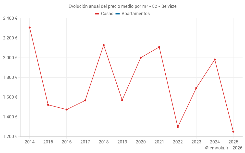 Evolución del precio medio por m² de las casas