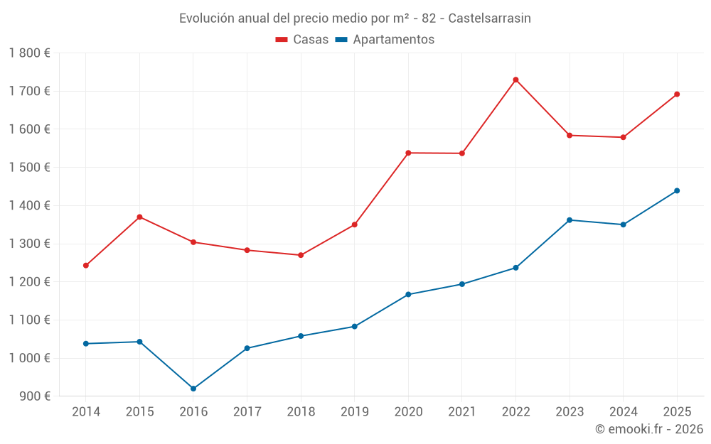 ¿Cuál es el precio por m2 de las casas en Castelsarrasin?