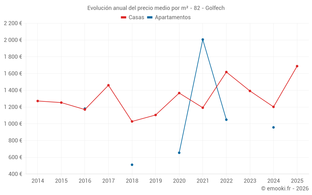 ¿Cuál es el precio por m2 de las casas en Golfech?