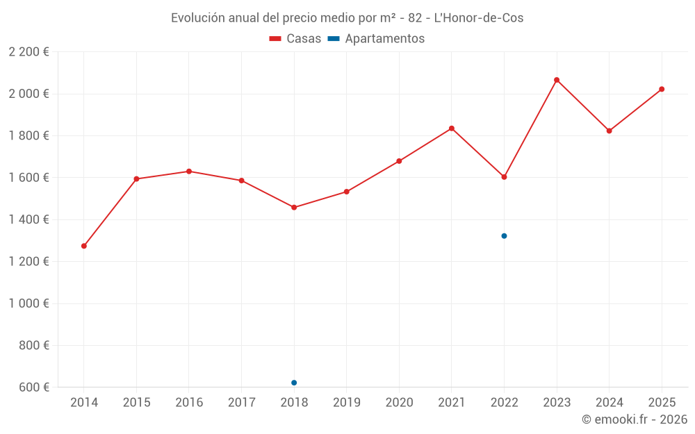 ¿Cuál es el precio por m2 de las casas en L'Honor-de-Cos?