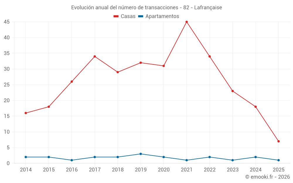 El precio mediano en las 18 transacciones de casas de los últimos 12 meses en la comuna de Lafrançaise fue de 1 830 € por metro cuadrado para un valor patrimonial medio de 153 500 €. Durante este período el 60% de las transacciones estuvieron entre 1 119 y 2 376 € por metro cuadrado (del 2º al 8º decil).