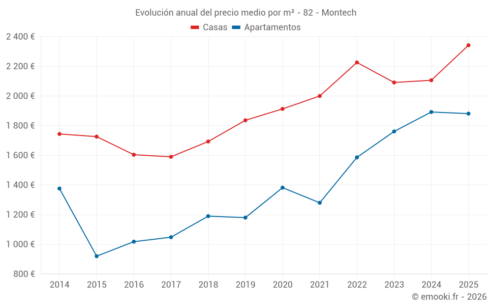 ¿Cuál es el precio por m2 de los apartamentos en Montech?