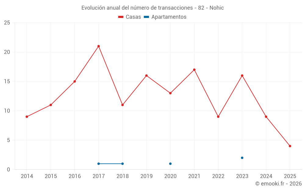 El precio mediano en las 21 transacciones de casas de los últimos 24 meses en la comuna de Nohic fue de 2 419 € por metro cuadrado para un valor patrimonial medio de 233 000 €. Durante este período el 60% de las transacciones estuvieron entre 1 848 y 2 778 € por metro cuadrado (del 2º al 8º decil).