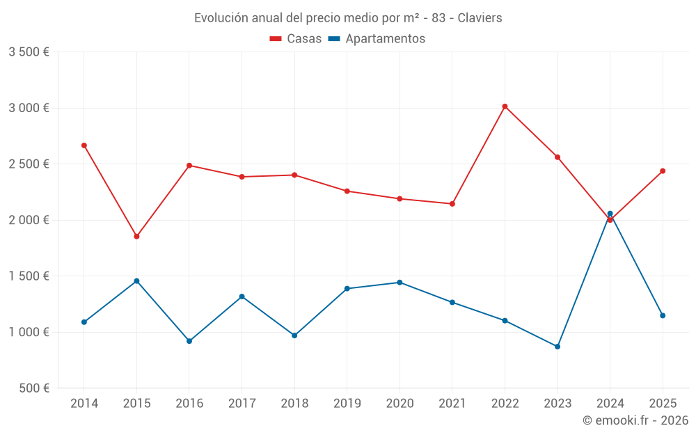 ¿Cuál es el precio por m2 de las casas en Claviers?