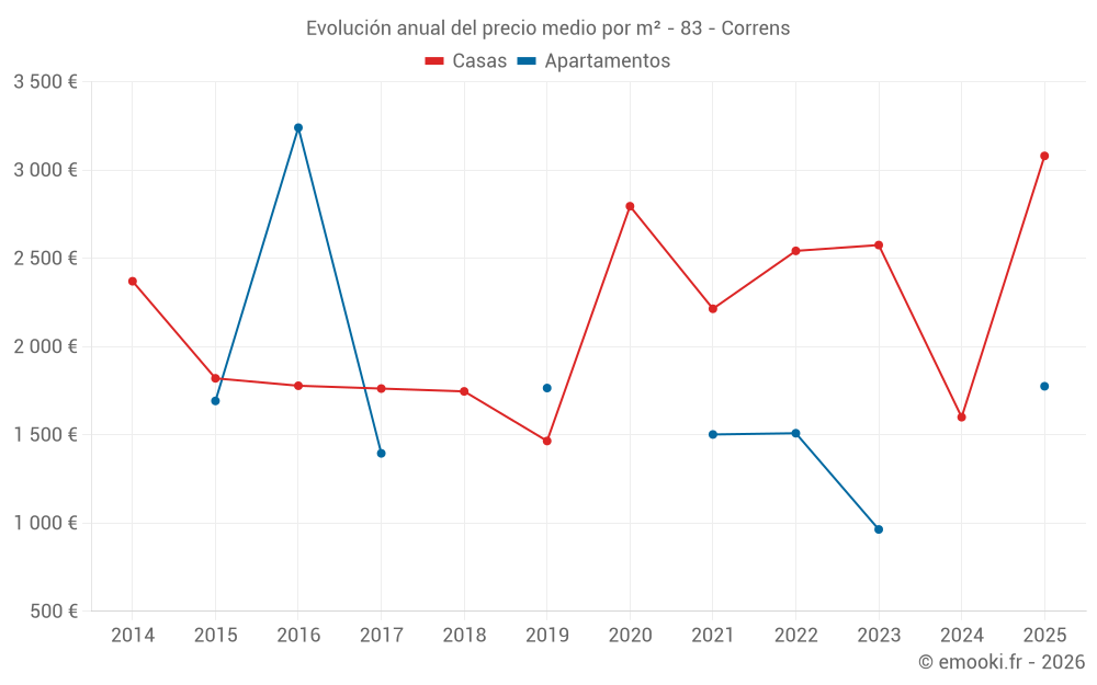 ¿Cuál es el precio por m2 de las casas en Correns?