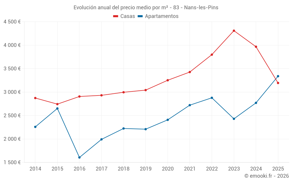 ¿Cuál es el precio por m2 de los apartamentos en Nans-les-Pins?
