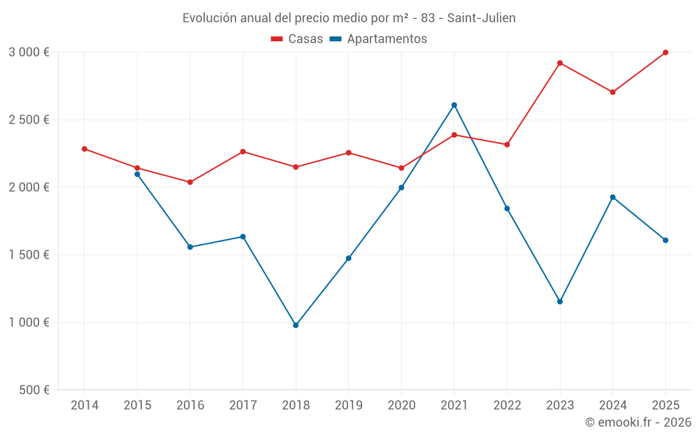 ¿Cuál es el precio por m2 de las casas en Saint-Julien?