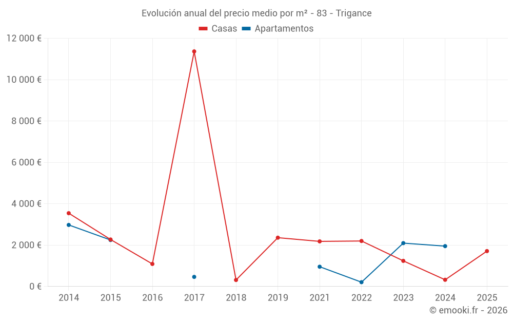 Mapa de precios de la vivienda en la comuna de Trigance, elija una sección para ver las transacciones por parcela.