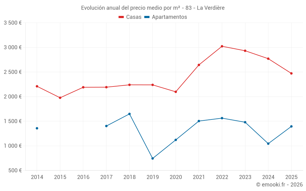 ¿Cuál es el precio por m2 de las casas en La Verdière?