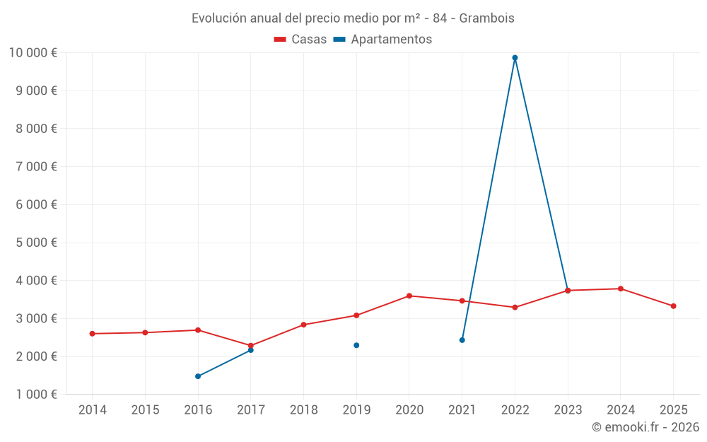¿Cuál es el precio por m2 de las casas en Grambois?