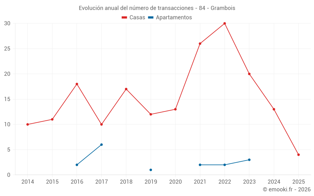El precio mediano en las 25 transacciones de casas de los últimos 24 meses en la comuna de Grambois fue de 3 647 € por metro cuadrado para un valor patrimonial medio de 415 000 €. Durante este período el 60% de las transacciones estuvieron entre 2 566 y 4 896 € por metro cuadrado (del 2º al 8º decil).