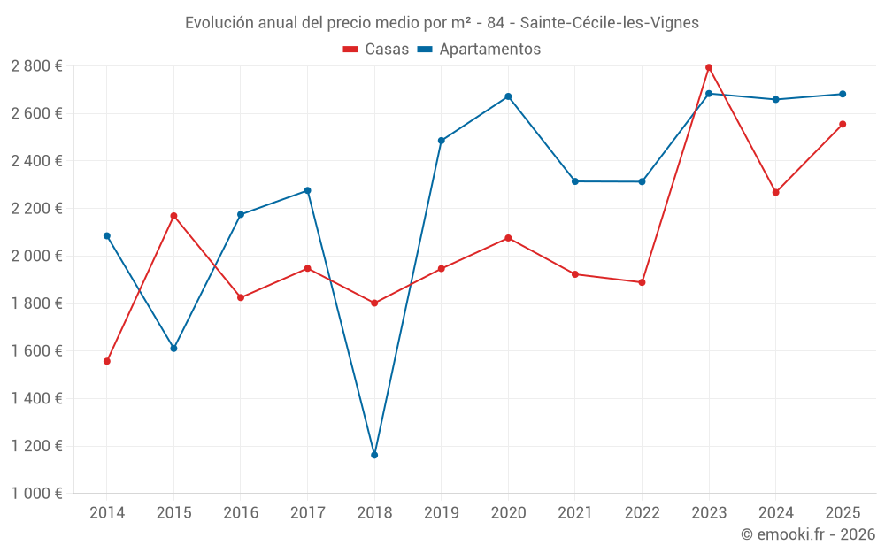 ¿Cuál es el precio por m2 de las casas en Sainte-Cécile-les-Vignes?