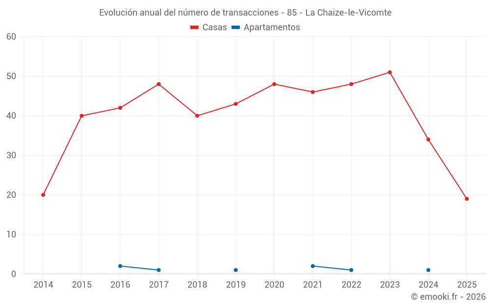 El precio mediano en las 19 transacciones de casas de los últimos 6 meses en la comuna de La Chaize-le-Vicomte fue de 1 648 € por metro cuadrado para un valor patrimonial medio de 160 400 €. Durante este período el 60% de las transacciones estuvieron entre 1 223 y 2 408 € por metro cuadrado (del 2º al 8º decil).