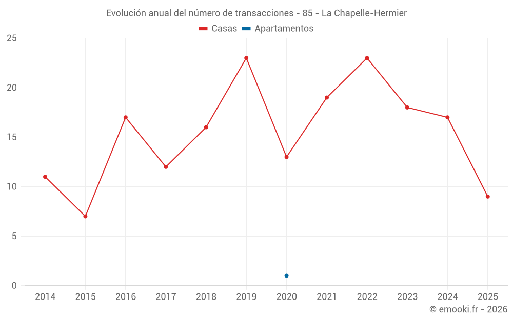 El precio mediano en las 19 transacciones de casas de los últimos 12 meses en la comuna de La Chapelle-Hermier fue de 2 361 € por metro cuadrado para un valor patrimonial medio de 190 000 €. Durante este período el 60% de las transacciones estuvieron entre 1 678 y 2 730 € por metro cuadrado (del 2º al 8º decil).