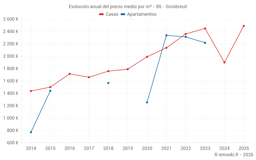 ¿Cuál es el precio por m2 de las casas en Grosbreuil?