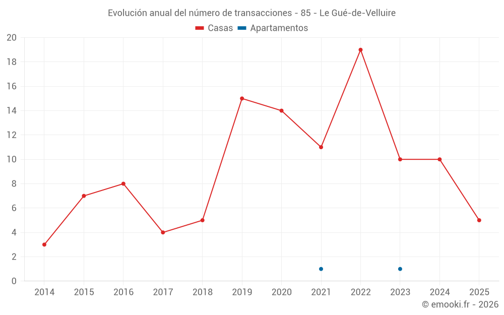 El precio mediano en las 20 transacciones de casas de los últimos 24 meses en la comuna de Le Gué-de-Velluire fue de 1 856 € por metro cuadrado para un valor patrimonial medio de 178 500 €. Durante este período el 60% de las transacciones estuvieron entre 850 y 2 269 € por metro cuadrado (del 2º al 8º decil).