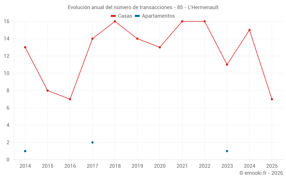 El precio mediano en las 19 transacciones de casas de los últimos 12 meses en la comuna de L'Hermenault fue de 1 460 € por metro cuadrado para un valor patrimonial medio de 140 000 €. Durante este período el 60% de las transacciones estuvieron entre 1 110 y 1 660 € por metro cuadrado (del 2º al 8º decil).
