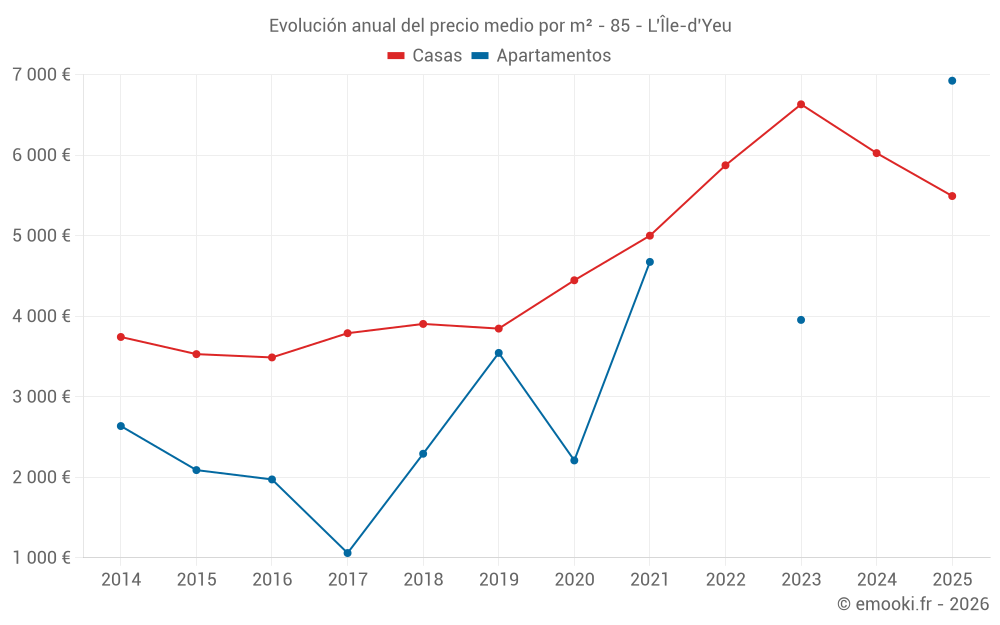 ¿Cuál es el precio por m2 de las casas en L'Île-d'Yeu?