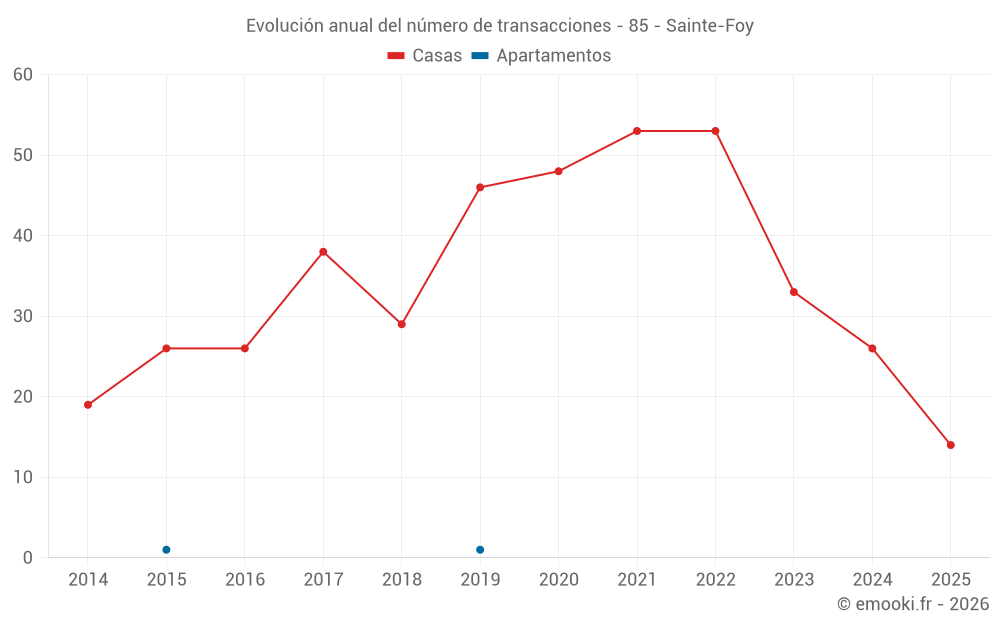 El precio mediano en las 24 transacciones de casas de los últimos 12 meses en la comuna de Sainte-Foy fue de 2 980 € por metro cuadrado para un valor patrimonial medio de 290 000 €. Durante este período el 60% de las transacciones estuvieron entre 2 387 y 3 677 € por metro cuadrado (del 2º al 8º decil).