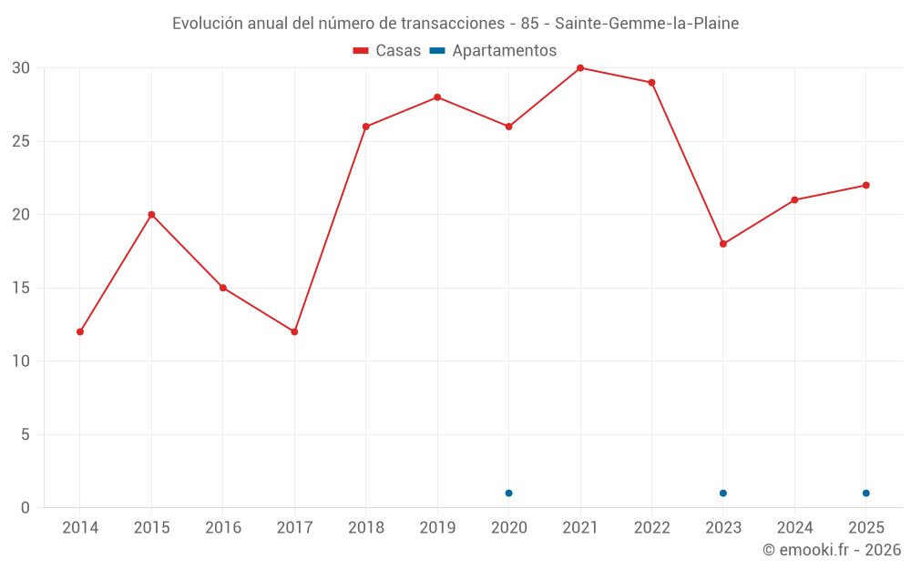 El precio mediano en las 22 transacciones de casas de los últimos 12 meses en la comuna de Sainte-Gemme-la-Plaine fue de 1 687 € por metro cuadrado para un valor patrimonial medio de 181 100 €. Durante este período el 60% de las transacciones estuvieron entre 1 054 y 2 436 € por metro cuadrado (del 2º al 8º decil).