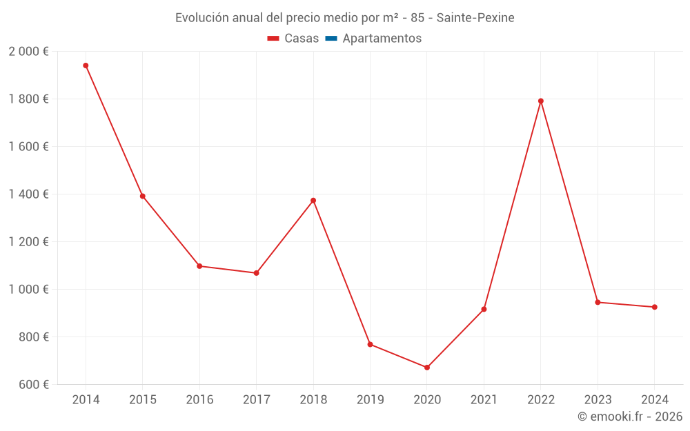 Evolución del precio medio por m² de las casas