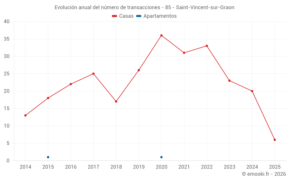 El precio mediano en las 19 transacciones de casas de los últimos 12 meses en la comuna de Saint-Vincent-sur-Graon fue de 1 818 € por metro cuadrado para un valor patrimonial medio de 264 830 €. Durante este período el 60% de las transacciones estuvieron entre 1 035 y 2 564 € por metro cuadrado (del 2º al 8º decil).