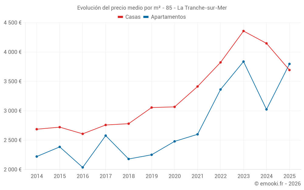 Mapa de precios de la vivienda en la comuna de La Tranche-sur-Mer, elija una sección para ver las transacciones por parcela.