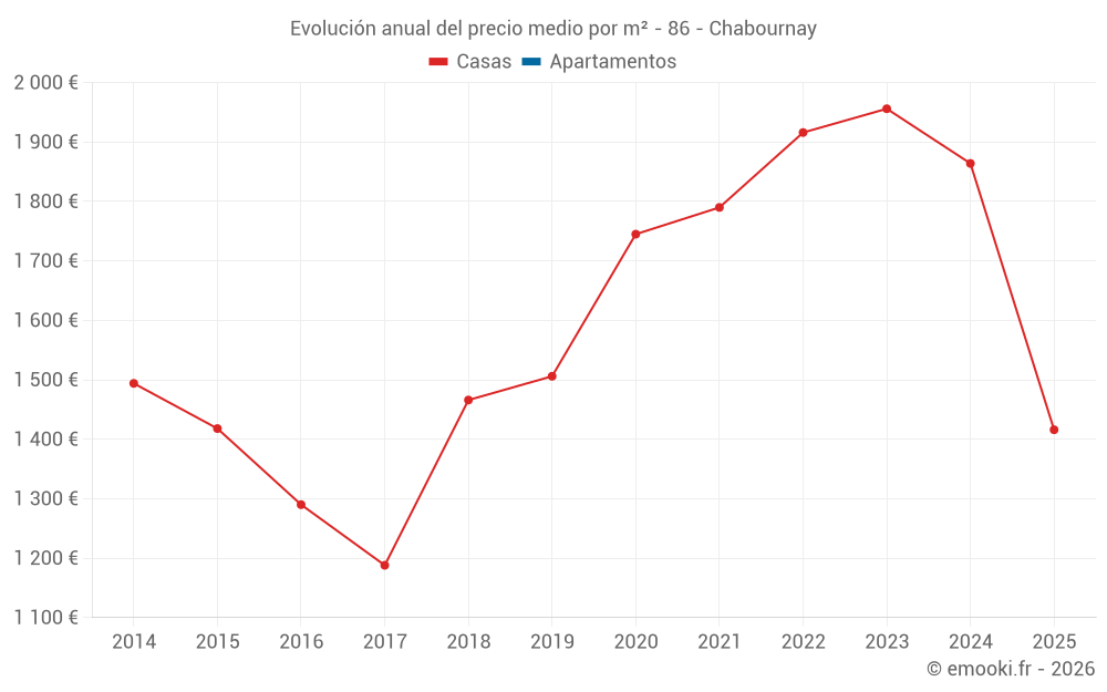 ¿Cuál es el precio por m2 de las casas en Chabournay?