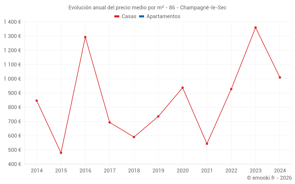 Mapa de precios de la vivienda en la comuna de Champagné-le-Sec, elija una sección para ver las transacciones por parcela.