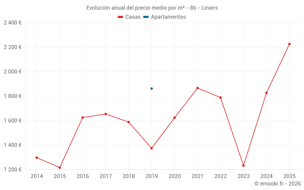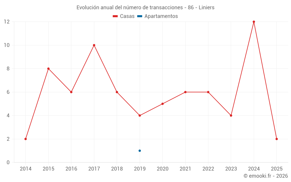 El precio mediano en las 16 transacciones de casas de los últimos 24 meses en la comuna de Liniers fue de 1 827 € por metro cuadrado para un valor patrimonial medio de 157 750 €. Durante este período el 60% de las transacciones estuvieron entre 1 014 y 2 031 € por metro cuadrado (del 2º al 8º decil).