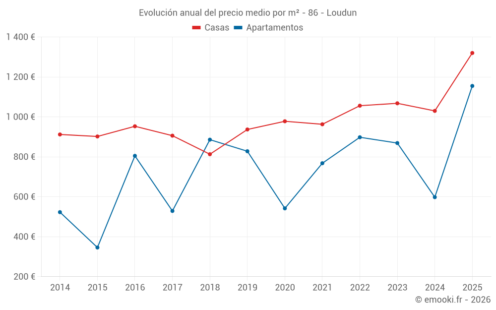 ¿Cuál es el precio por m2 de las casas en Loudun?