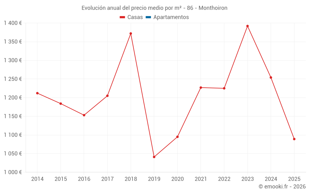 El precio mediano en las 17 transacciones de casas de los últimos 24 meses en la comuna de Monthoiron fue de 1 265 € por metro cuadrado para un valor patrimonial medio de 116 600 €. Durante este período el 60% de las transacciones estuvieron entre 868 y 1 616 € por metro cuadrado (del 2º al 8º decil).