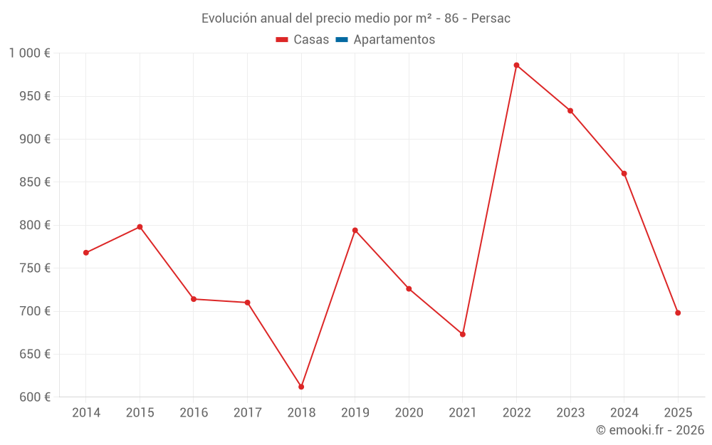 Evolución del precio medio por m² de las casas